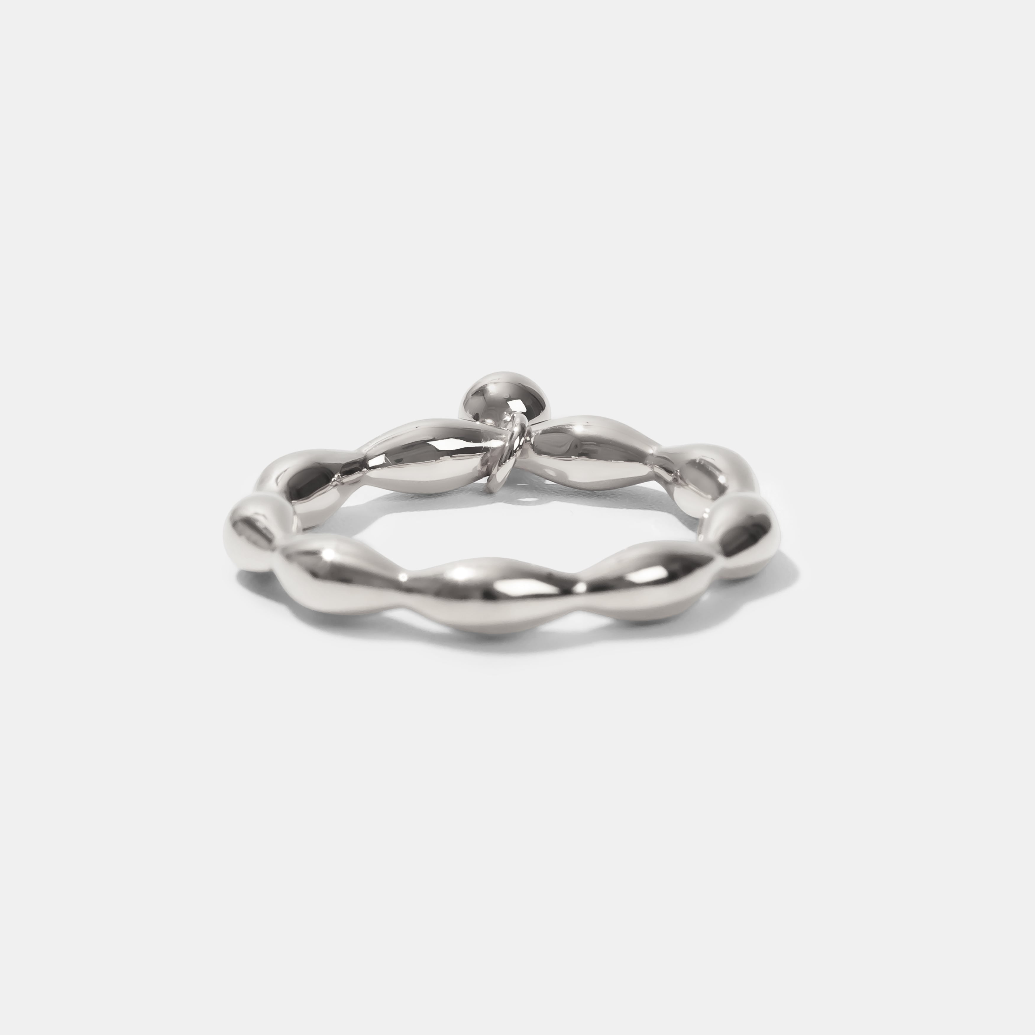 波打つようなラインに、揺れ動くボールパーツが特徴的なリング。
