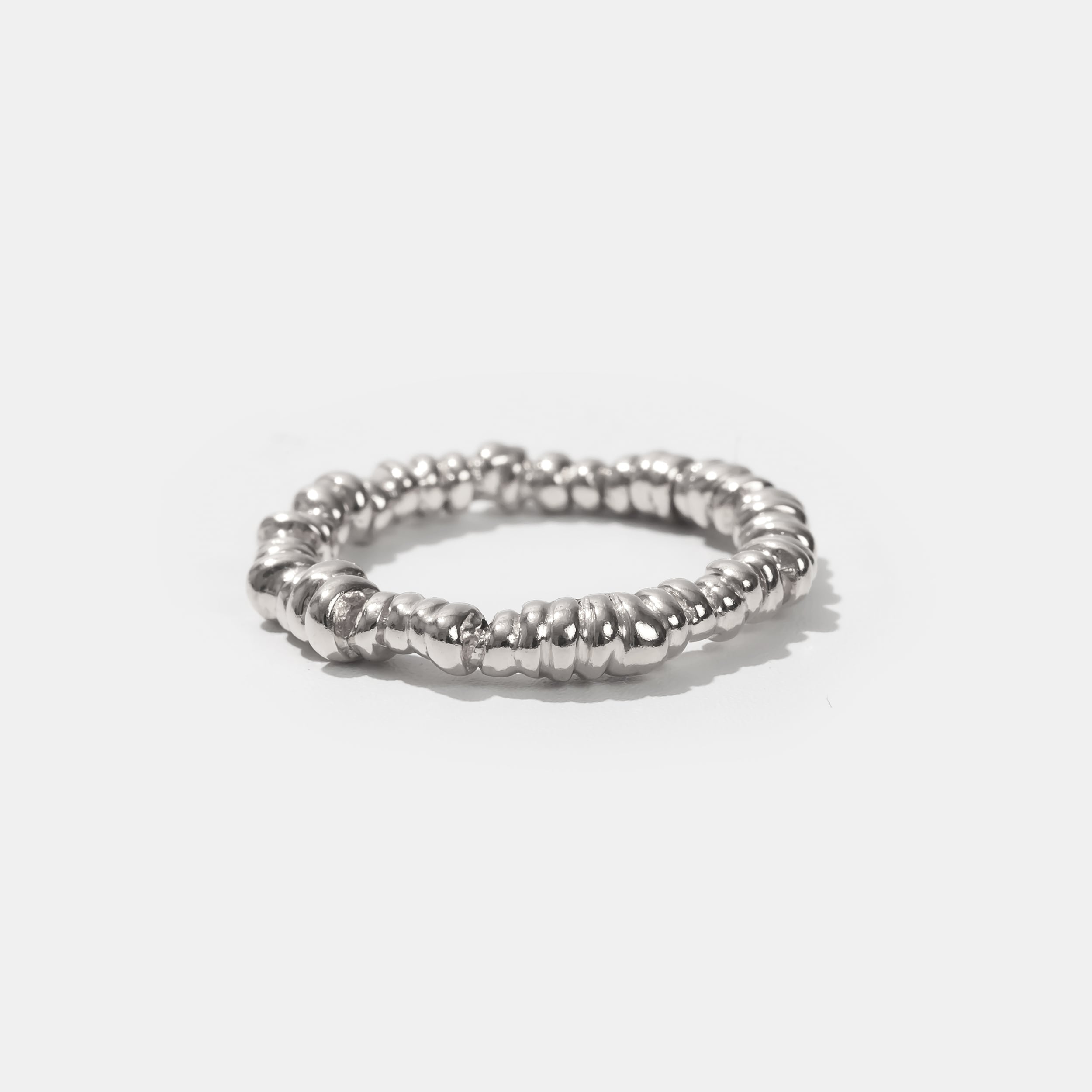 いびつなフォルムのビーズが連なったようなカジュアルなデザイン。