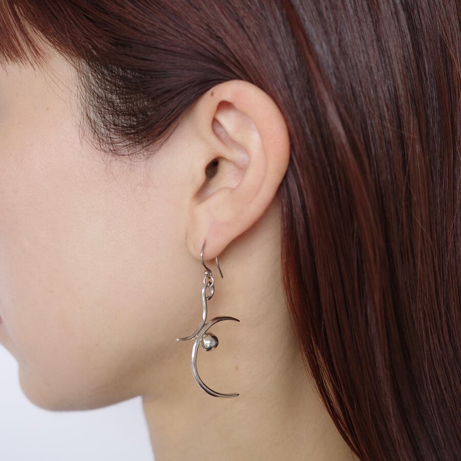 揺れ動く大ぶりなモチーフが特徴的なピアス。