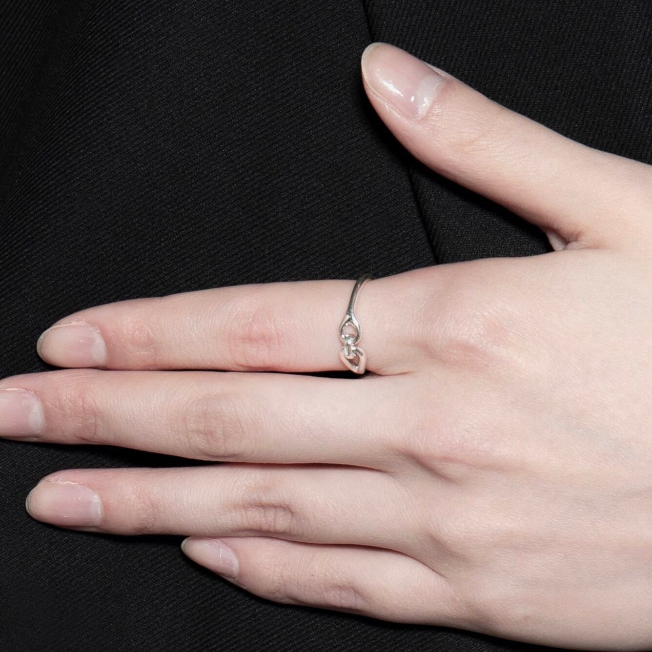 アシンメトリーな中央のモチーフが程よいアクセントとなるリング。