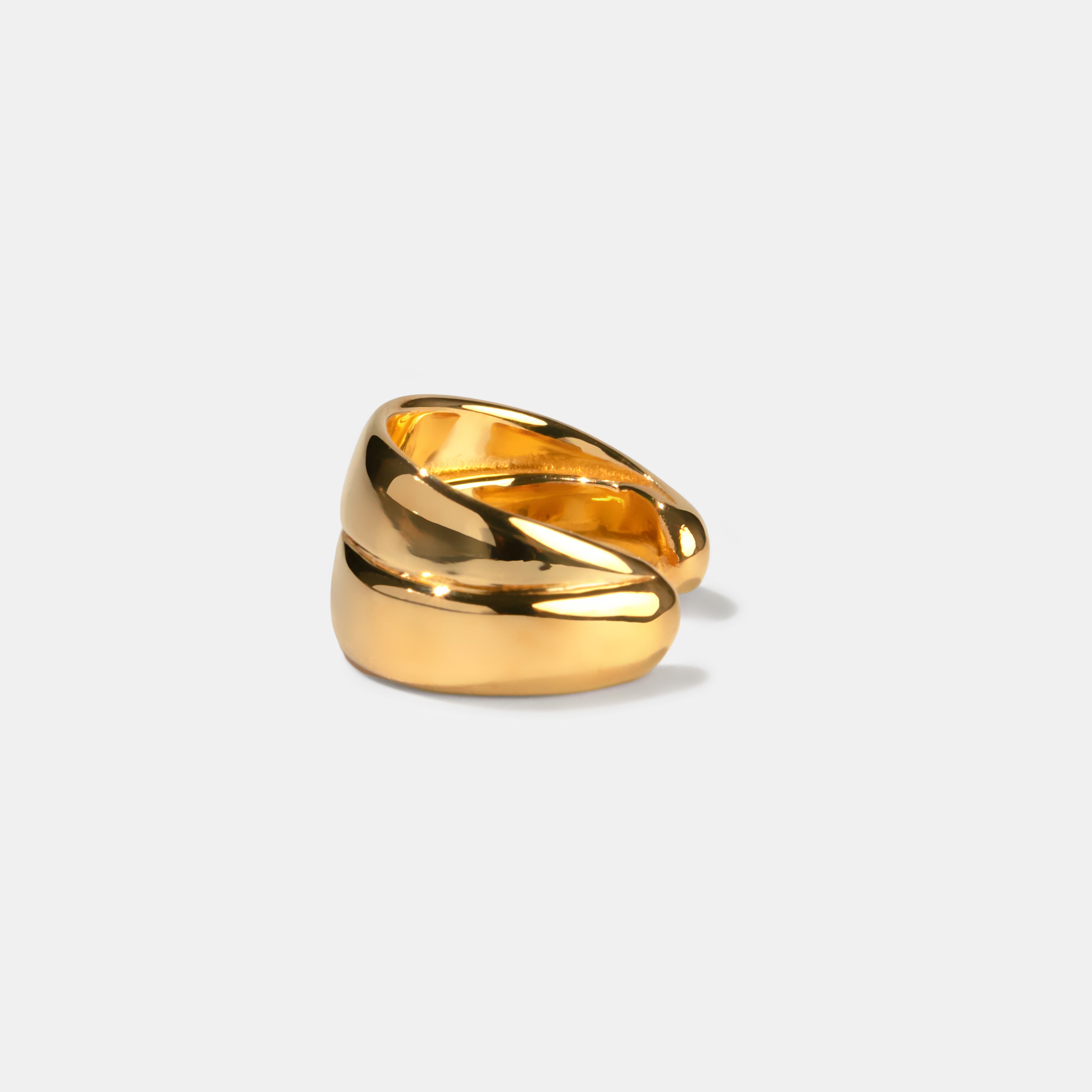 二つの面が重なり合う、洗練されたデザインのイヤーカフ。