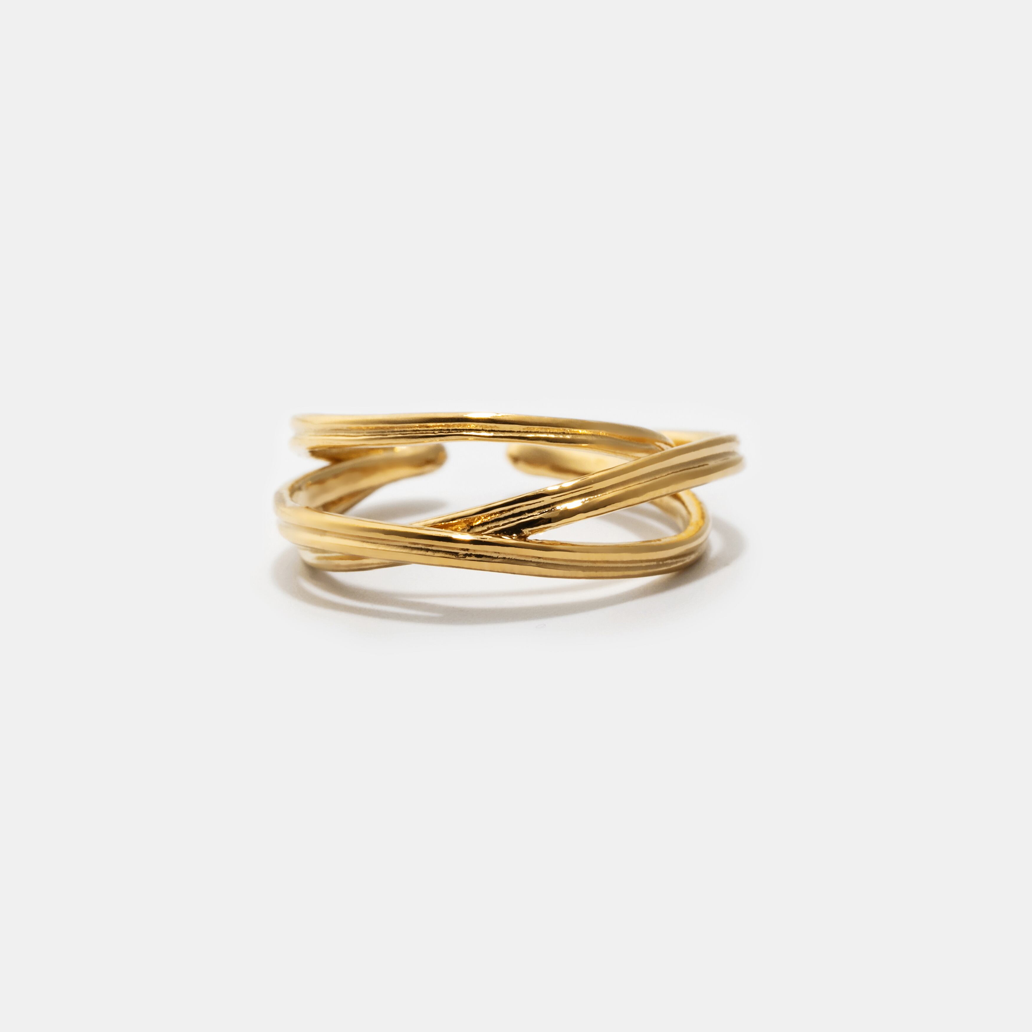 複雑に交差した線の一つひとつの中央に溝をデザインしており、