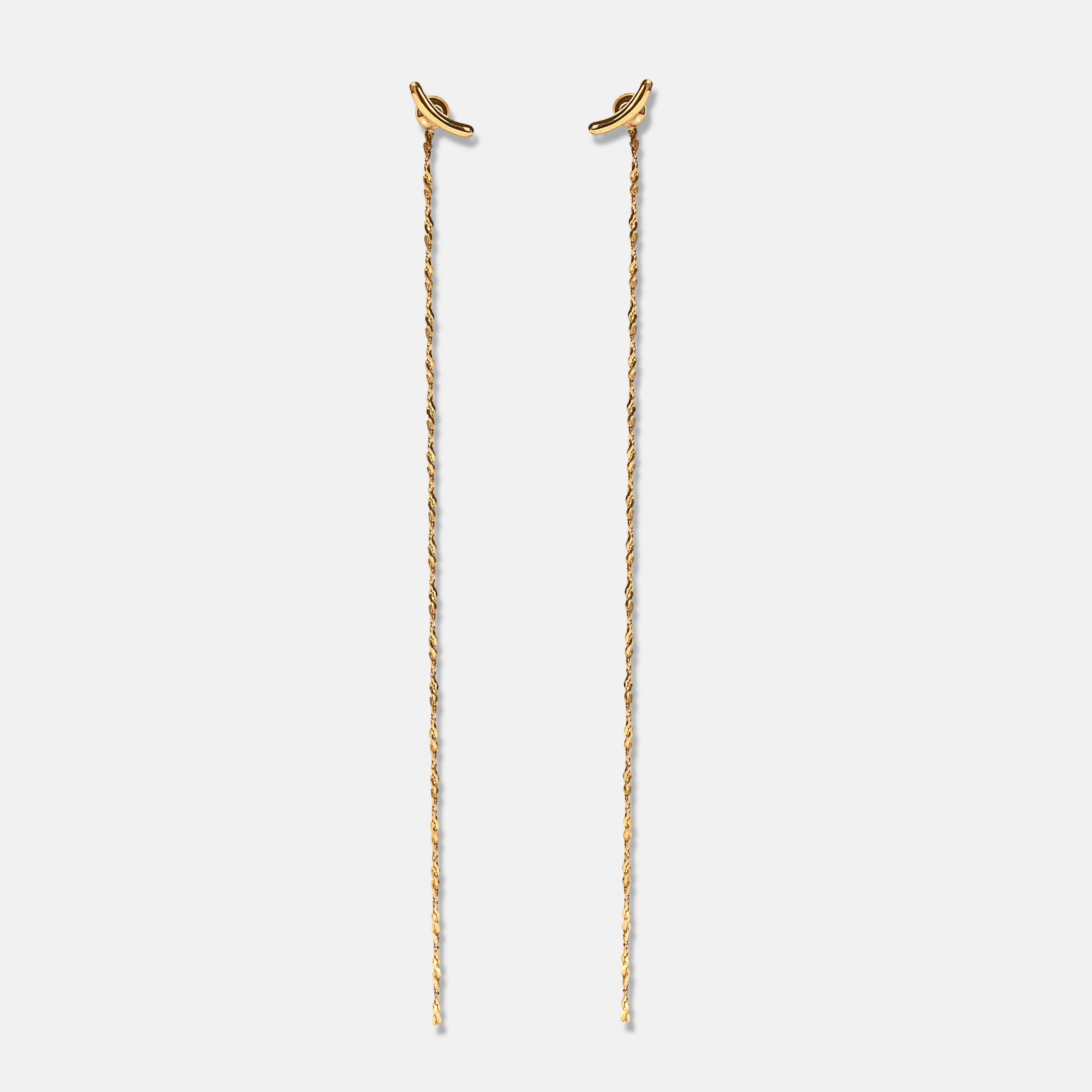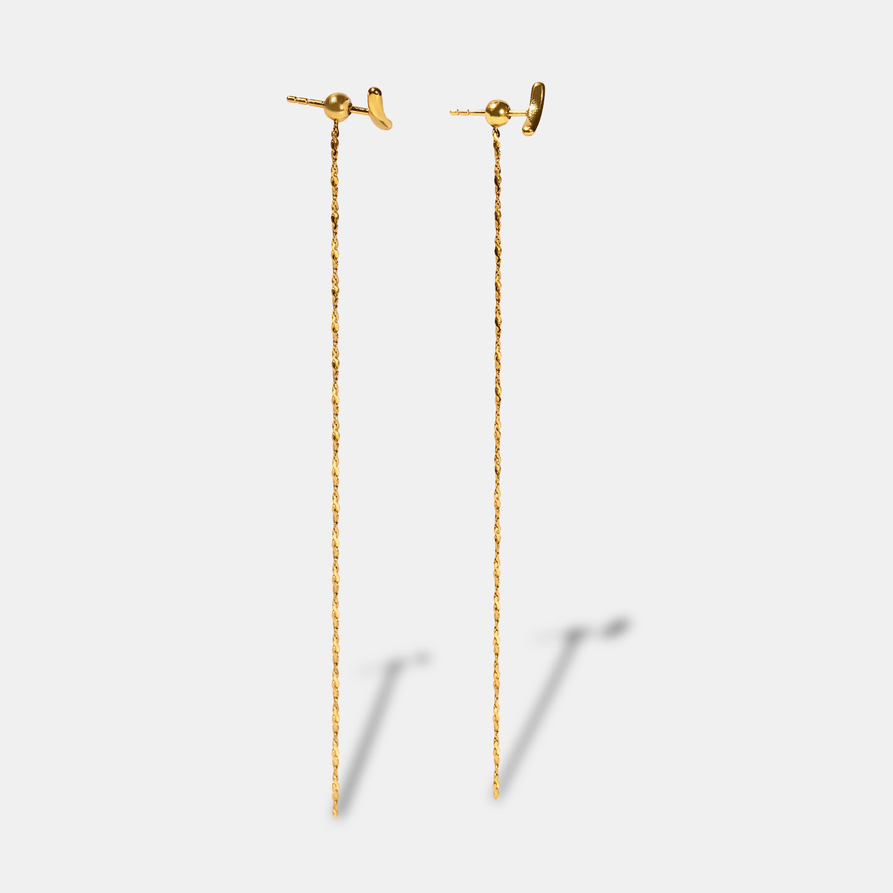 ミニマルなモチーフに、きらきらとしたカッティングが特徴的なチェーンがついたピアス。