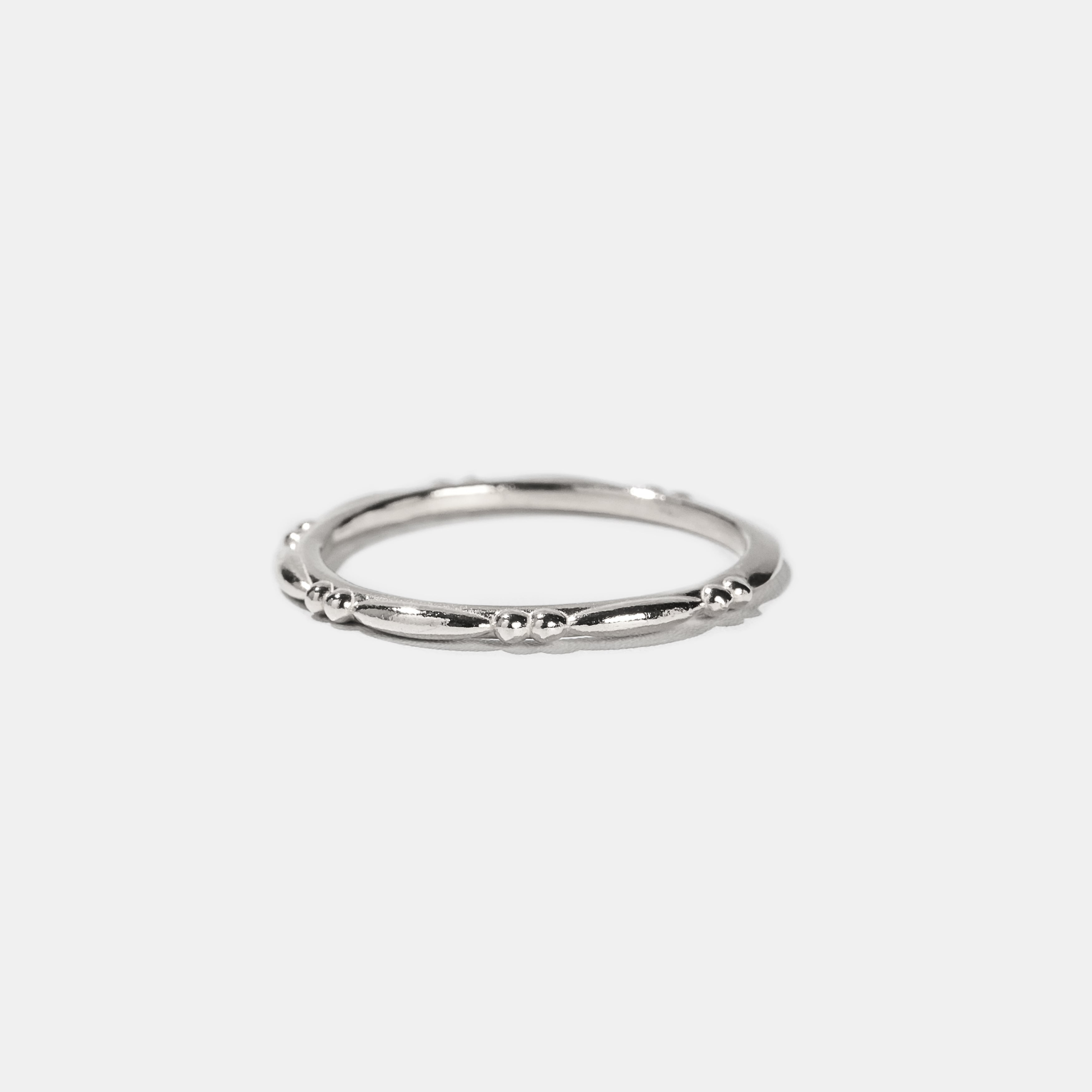 蕾や実から着想を得てデザインされた、オリジナルのパターンが特徴的なリング。