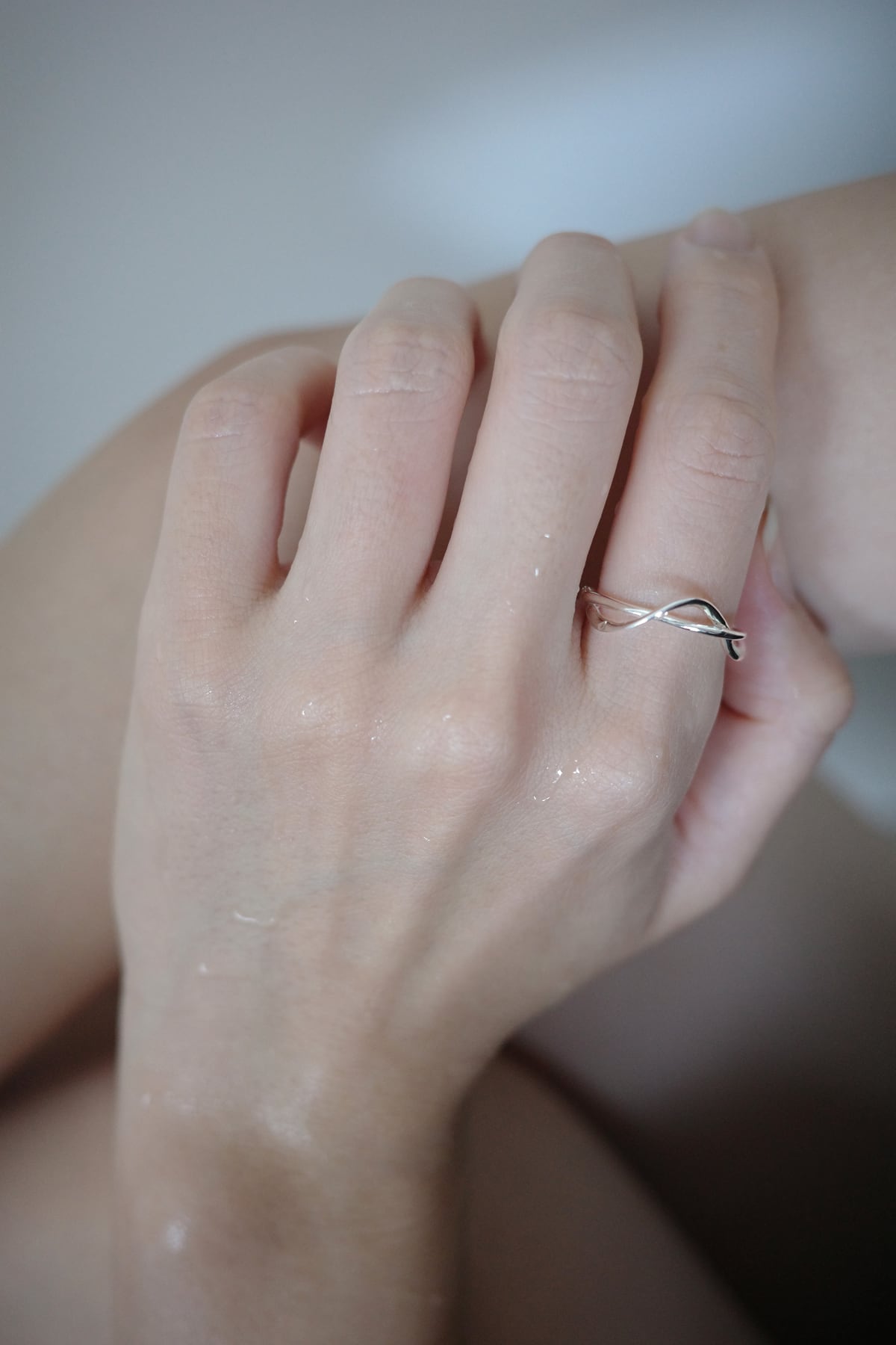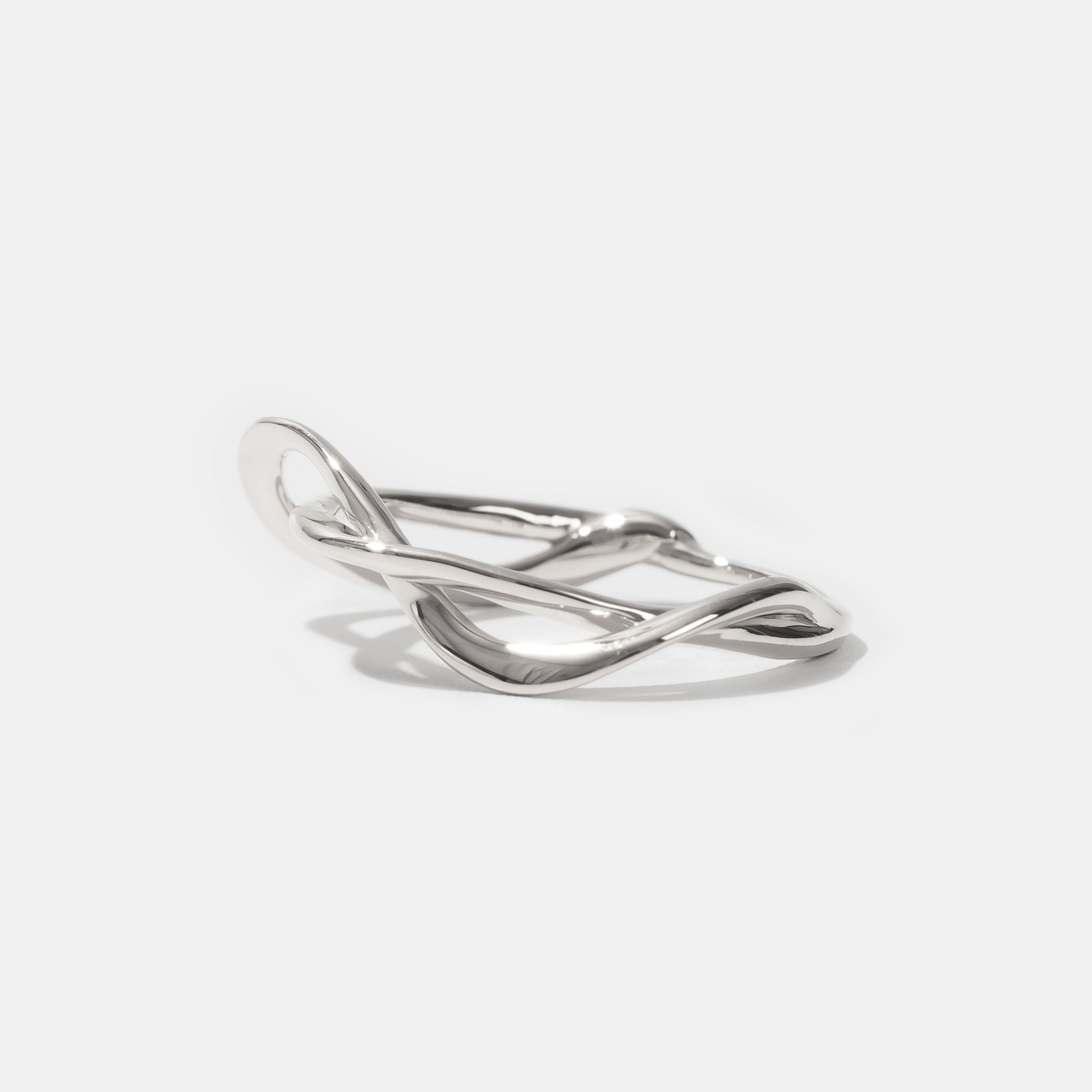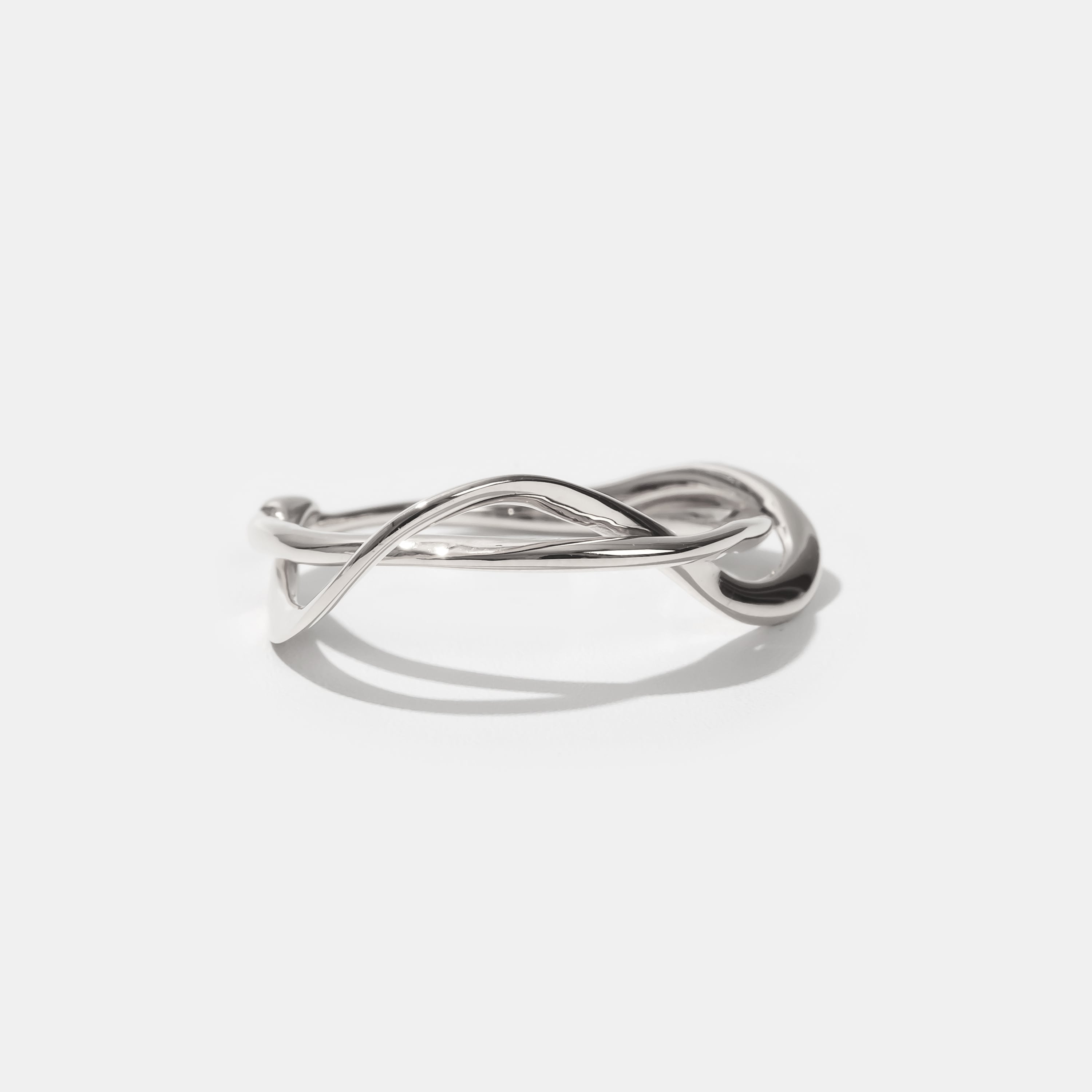 形状が異なる2本の銀線が交差し、生み出される立体的なフォルムが特徴のリング。