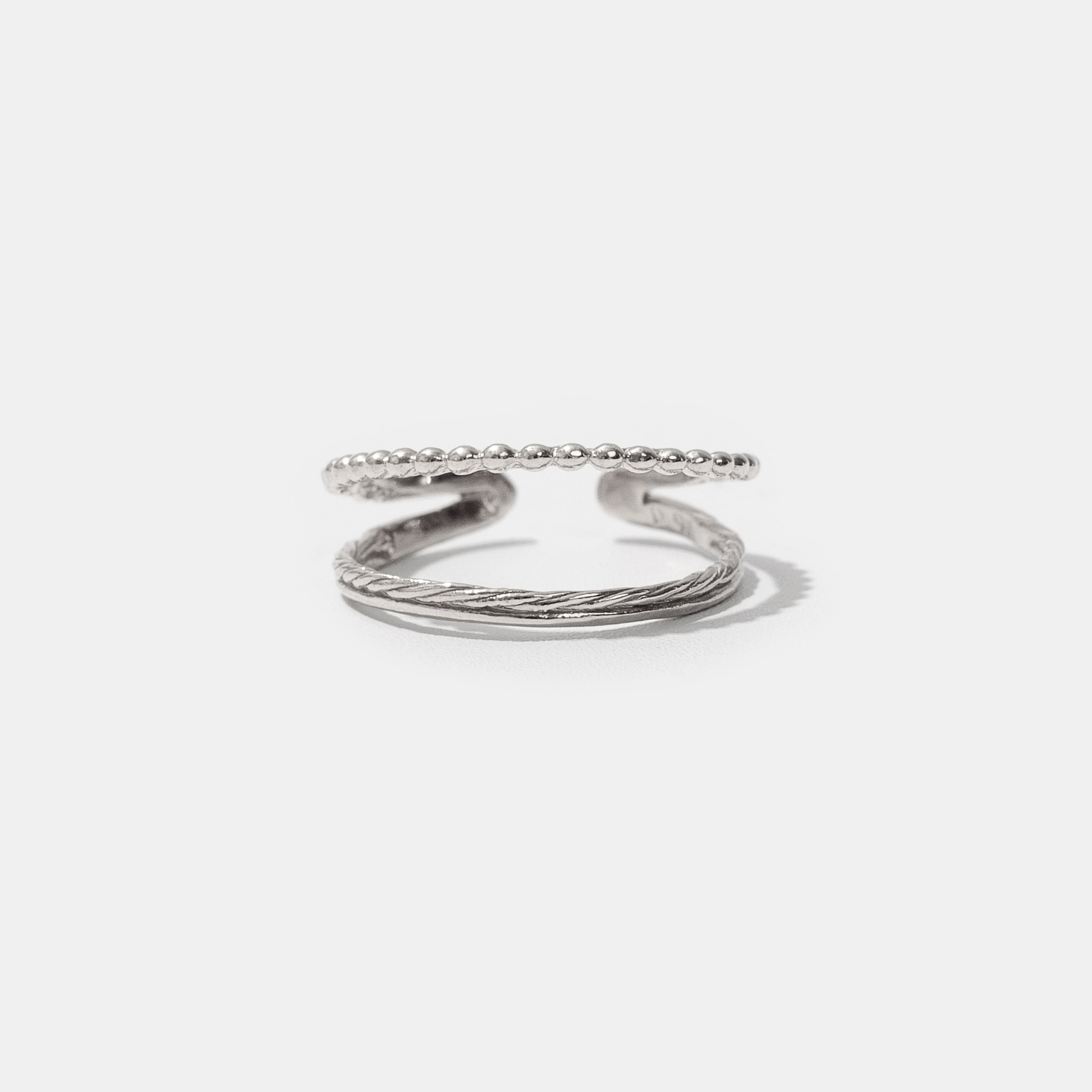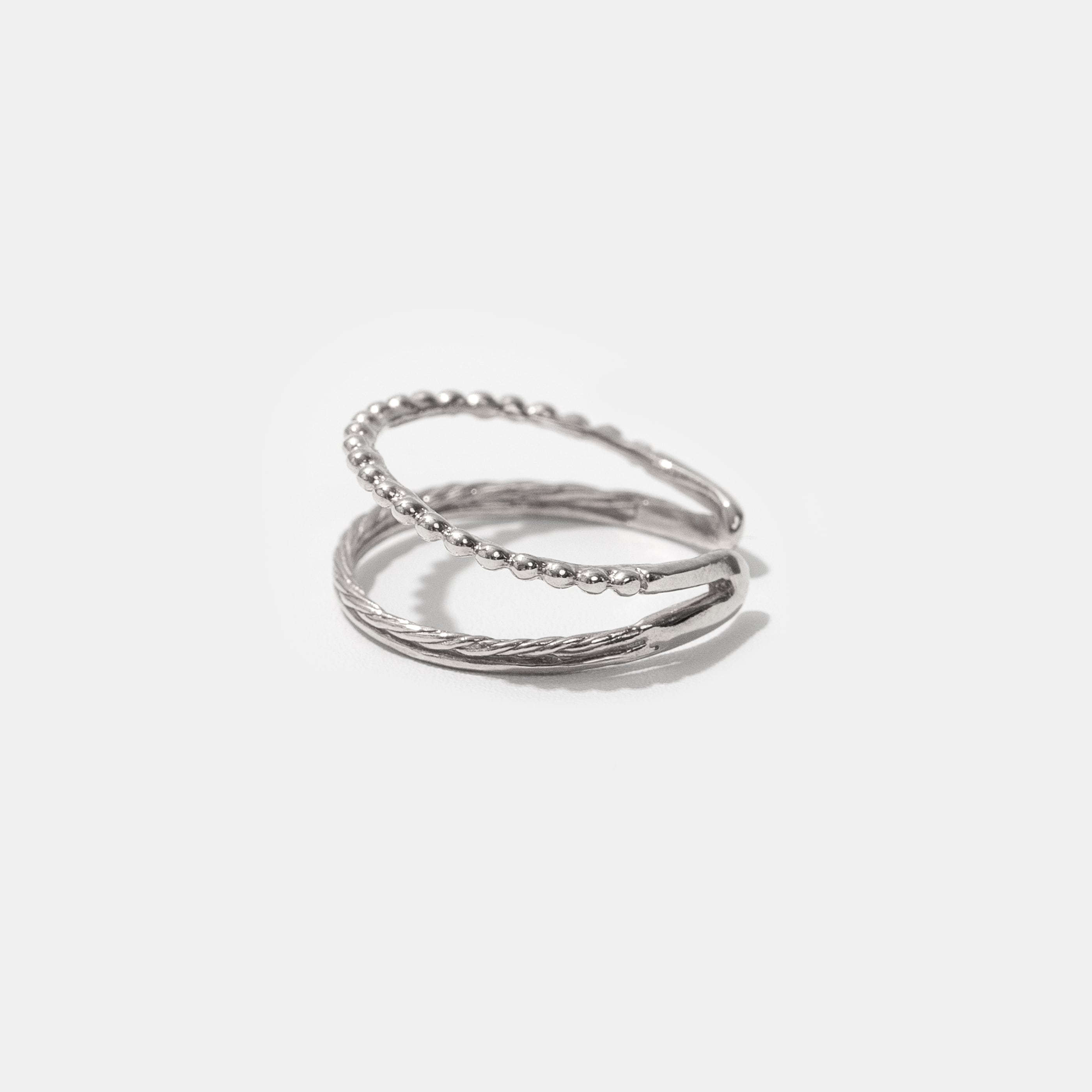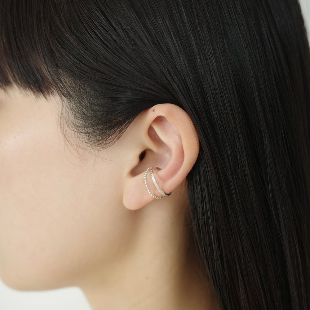 デザインの異なる2本のラインと繊細なデザインが特徴のイヤーカフ。
