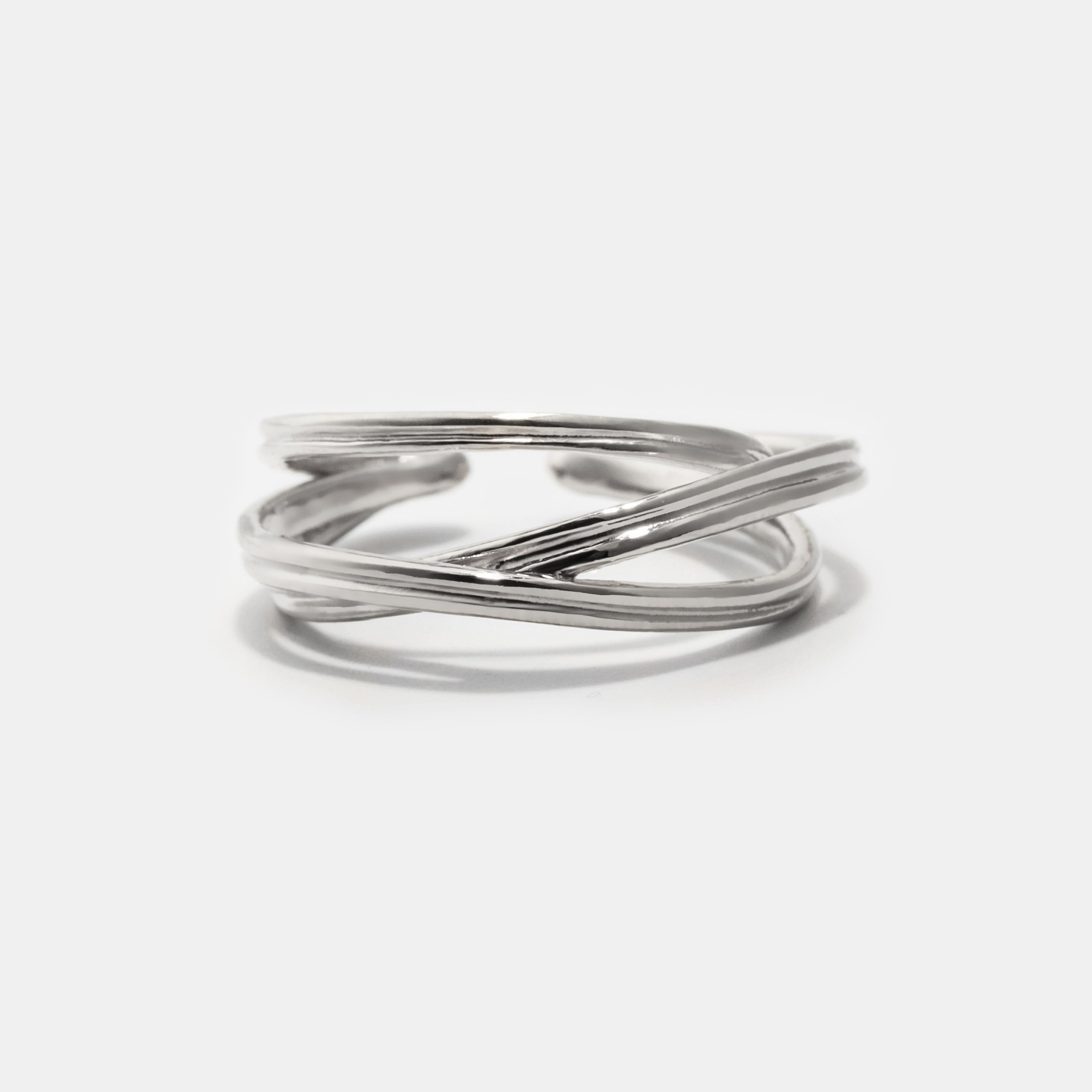 複雑に交差した線の一つひとつの中央に溝をデザインしており、