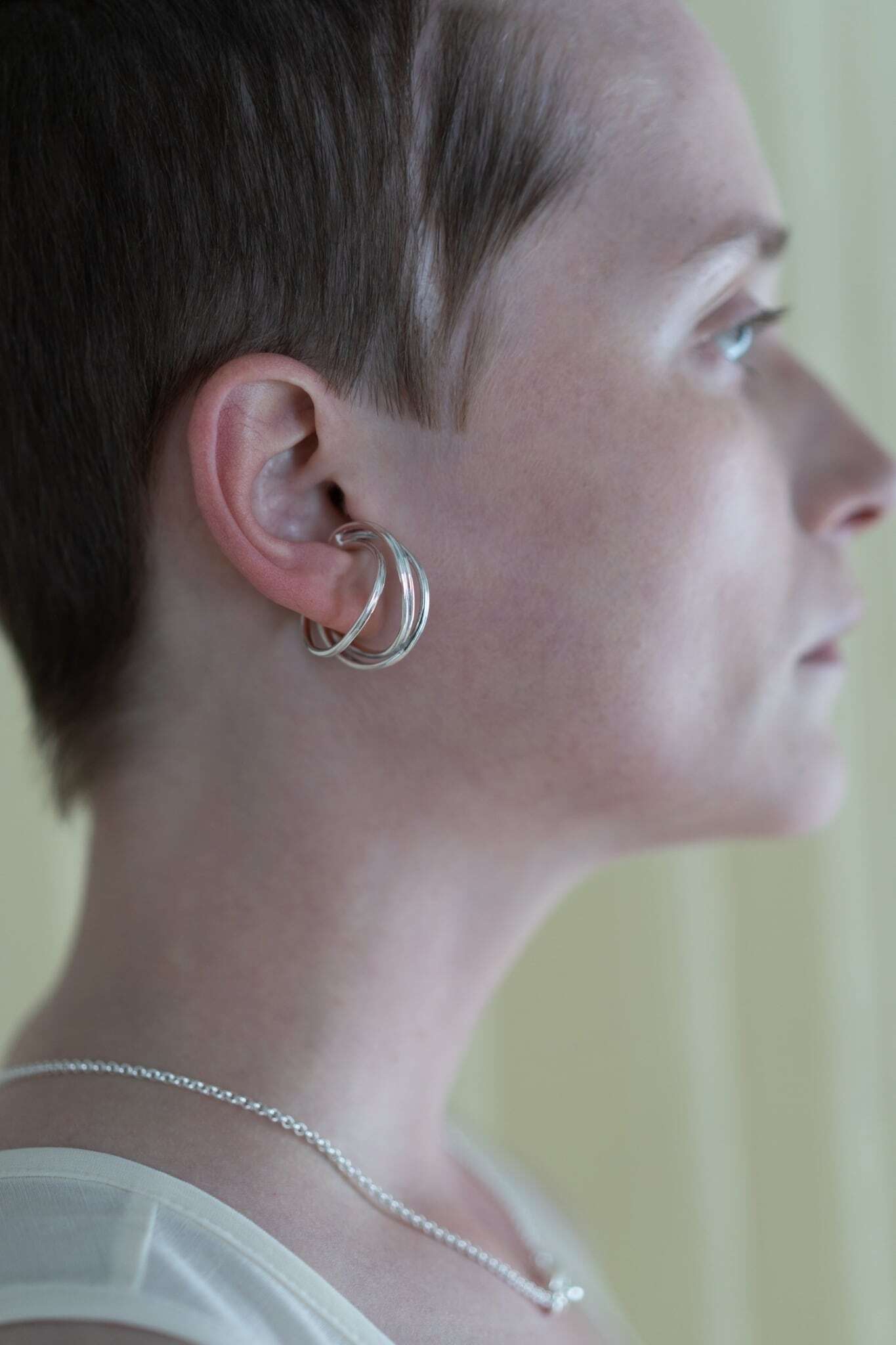 大ぶりで個性的なデザインが印象的なイヤーカフ。