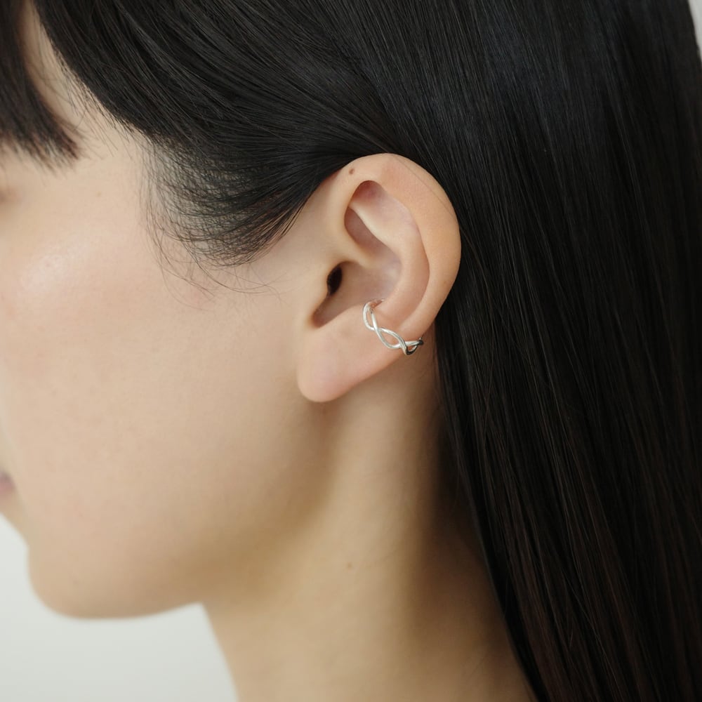 繊細な線のイヤーカフは、ピアスと合わせてつけても。
