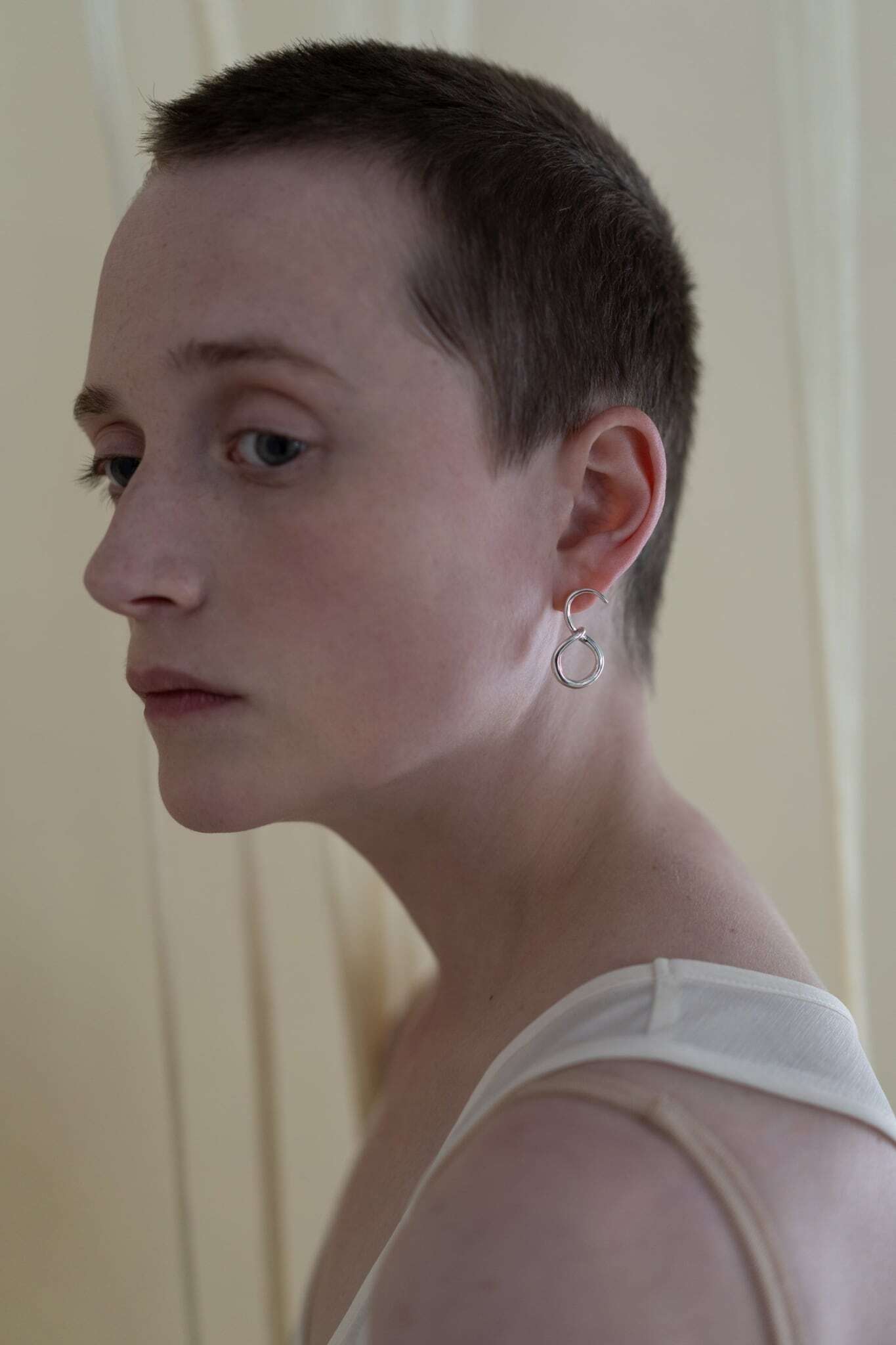 一見シンプルなデザインですが、耳元につけるとその曲線が際立ち、身に着ける人の個性を引き立ててくれるようなピアスです。