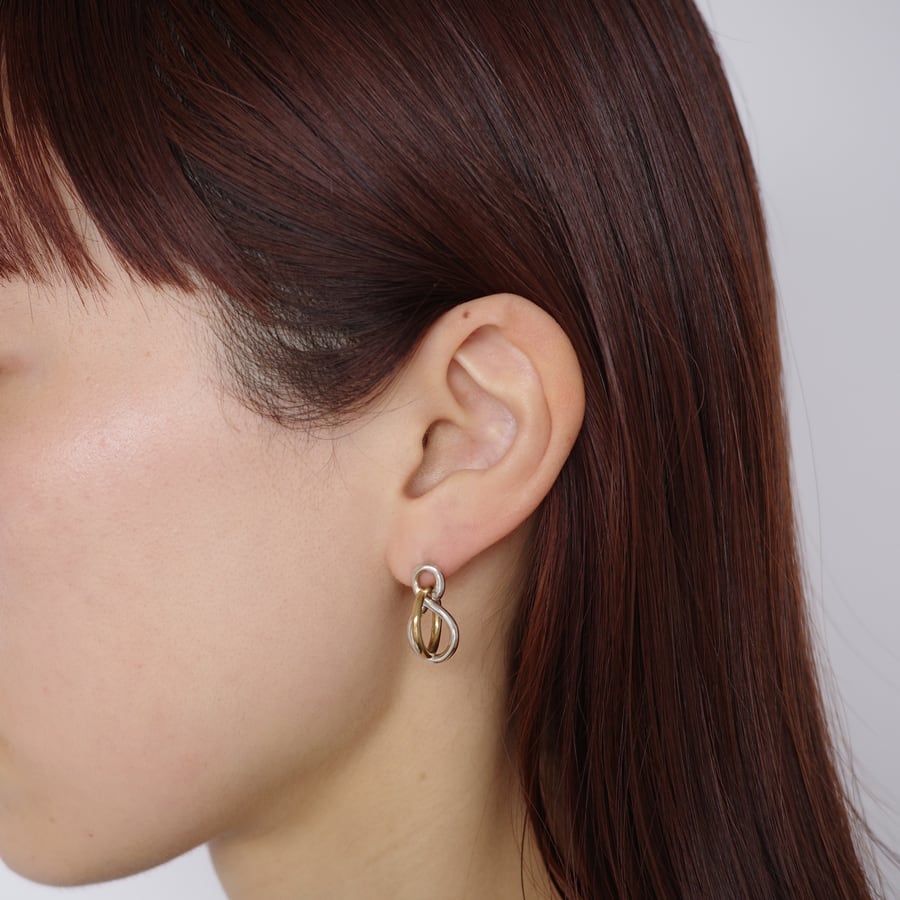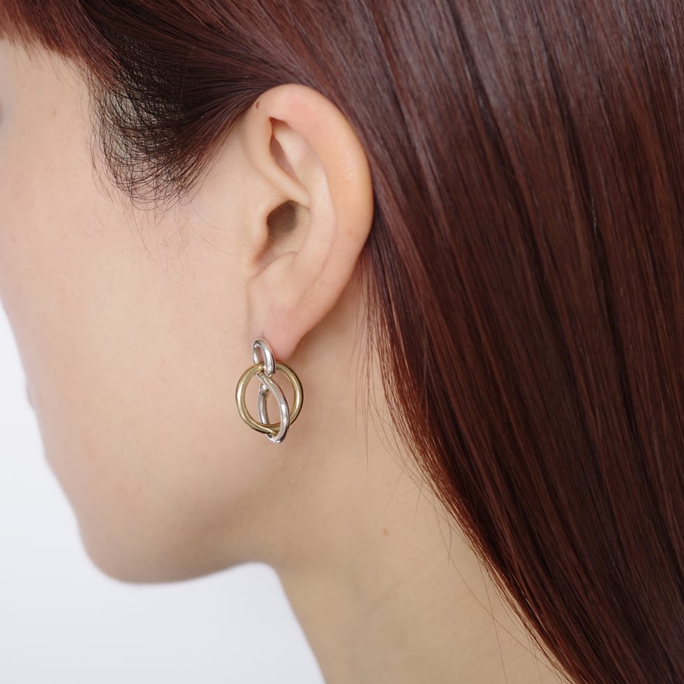 有機的な銀線の絡まりがゴールドのリングに交差し、遊び心あるデザインは個性的でありながら上品な印象を与えてくれるようなピアス。