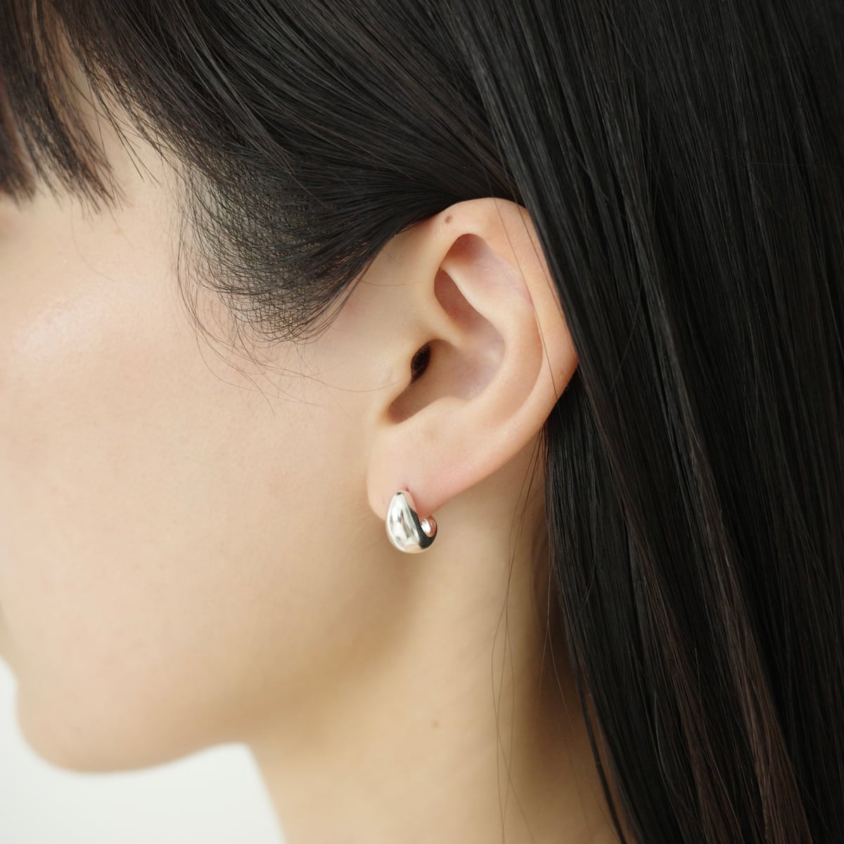 耳たぶに柔らかく沿う、程よいボリューム感のピアス。