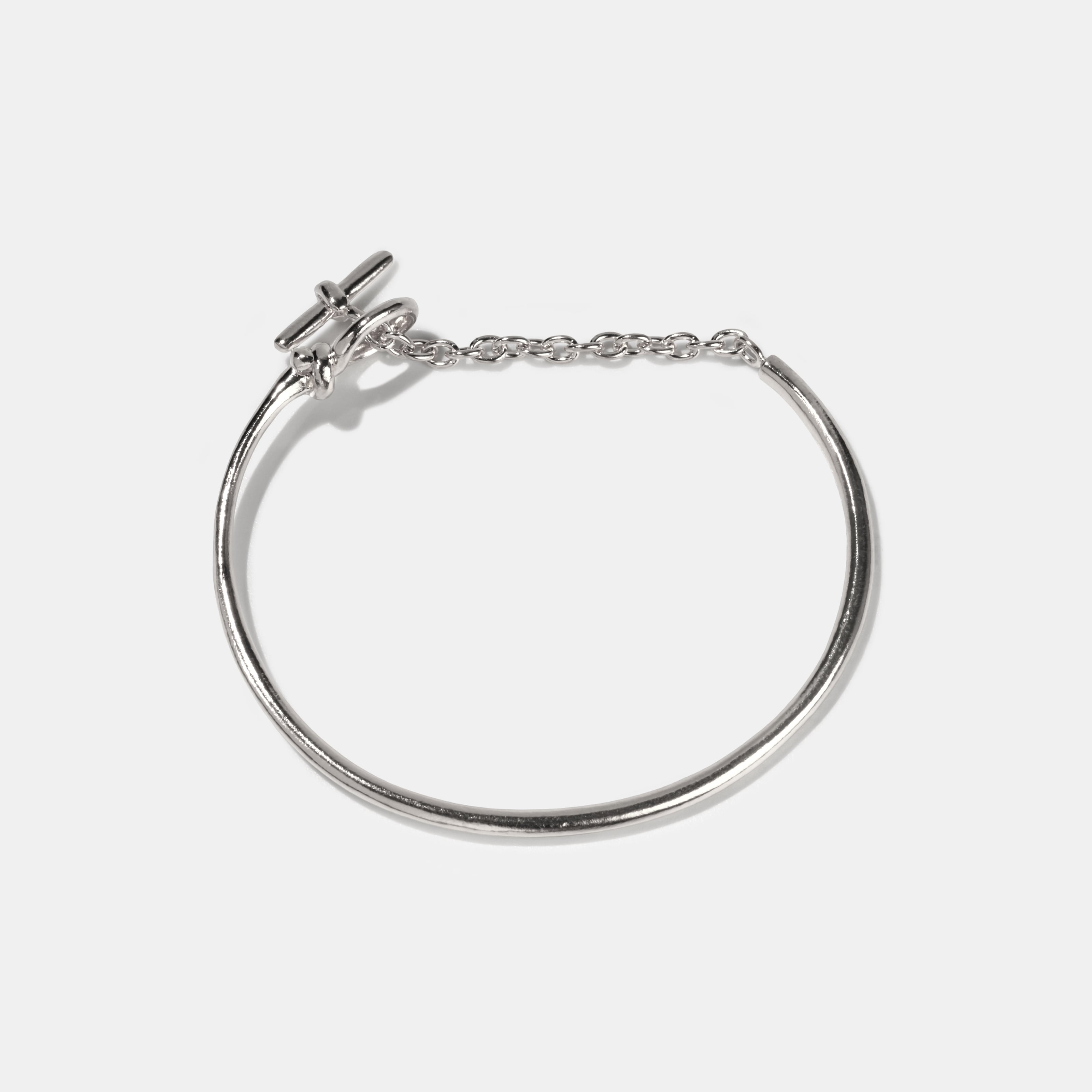 一筋に流れる銀線と、ミニマルなチェーンが特徴的なブレスレット。