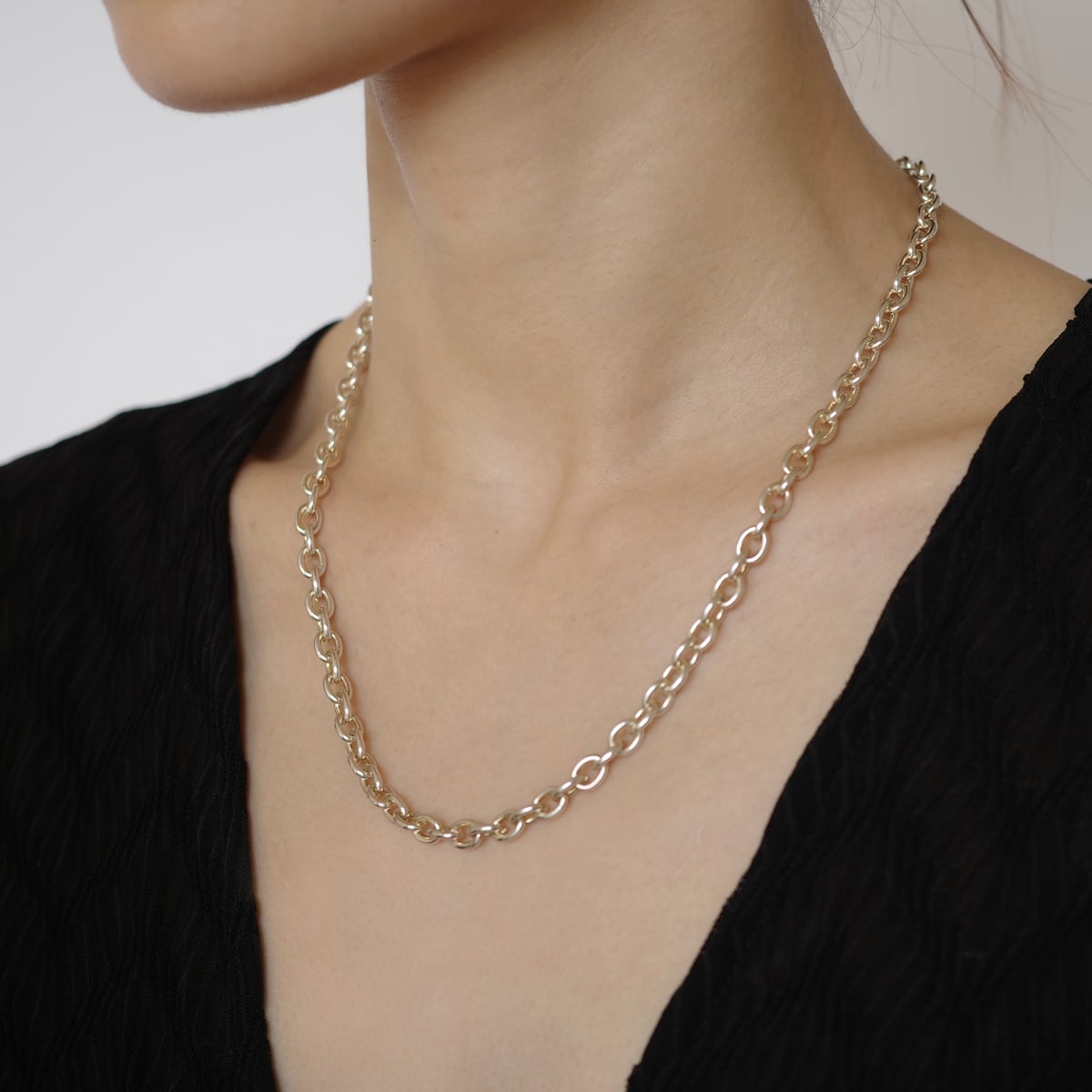 存在感のある太めのアズキチェーンを使用したネックレス。
