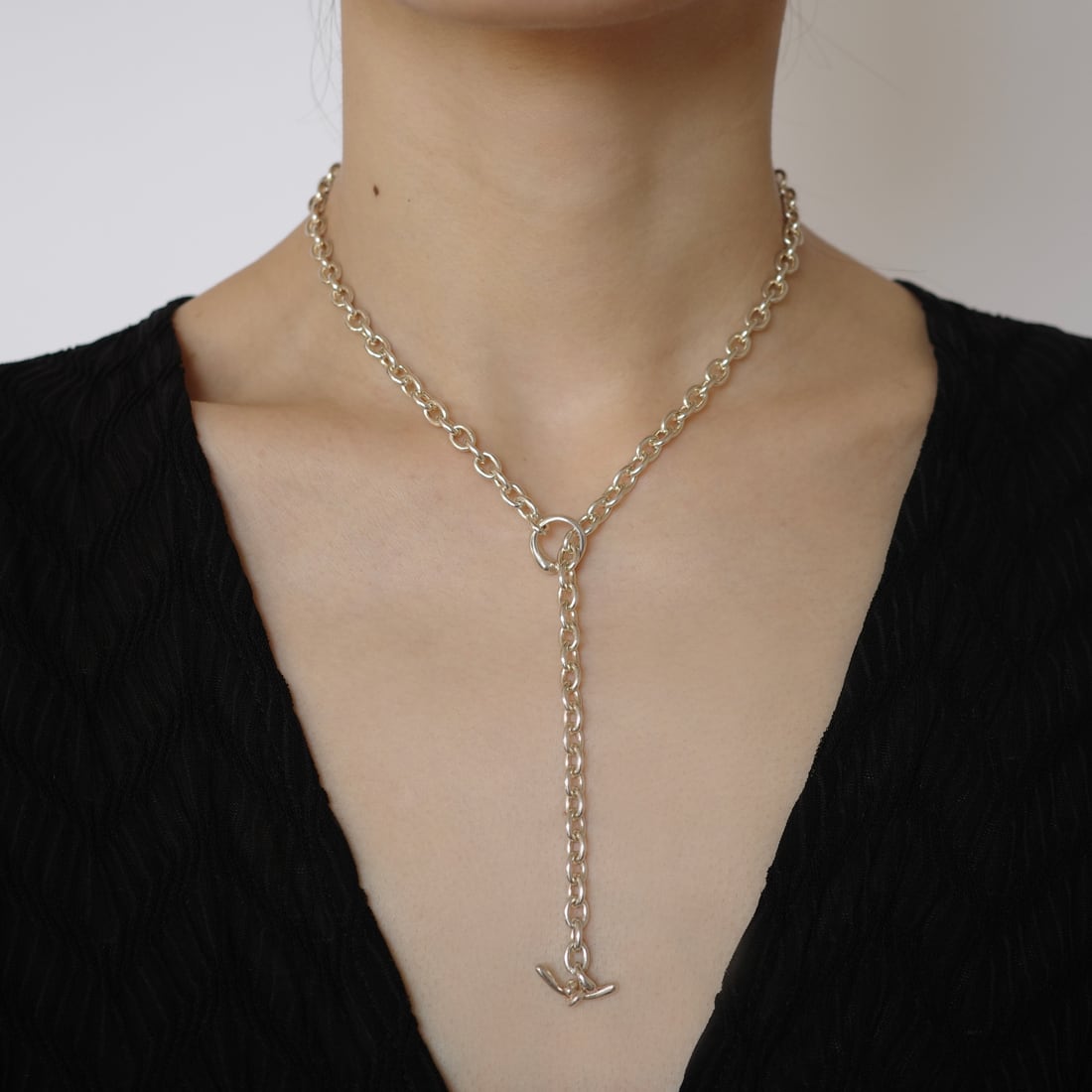 ボリュームあるチェーンがスタイリングのアクセントとして活躍します。
