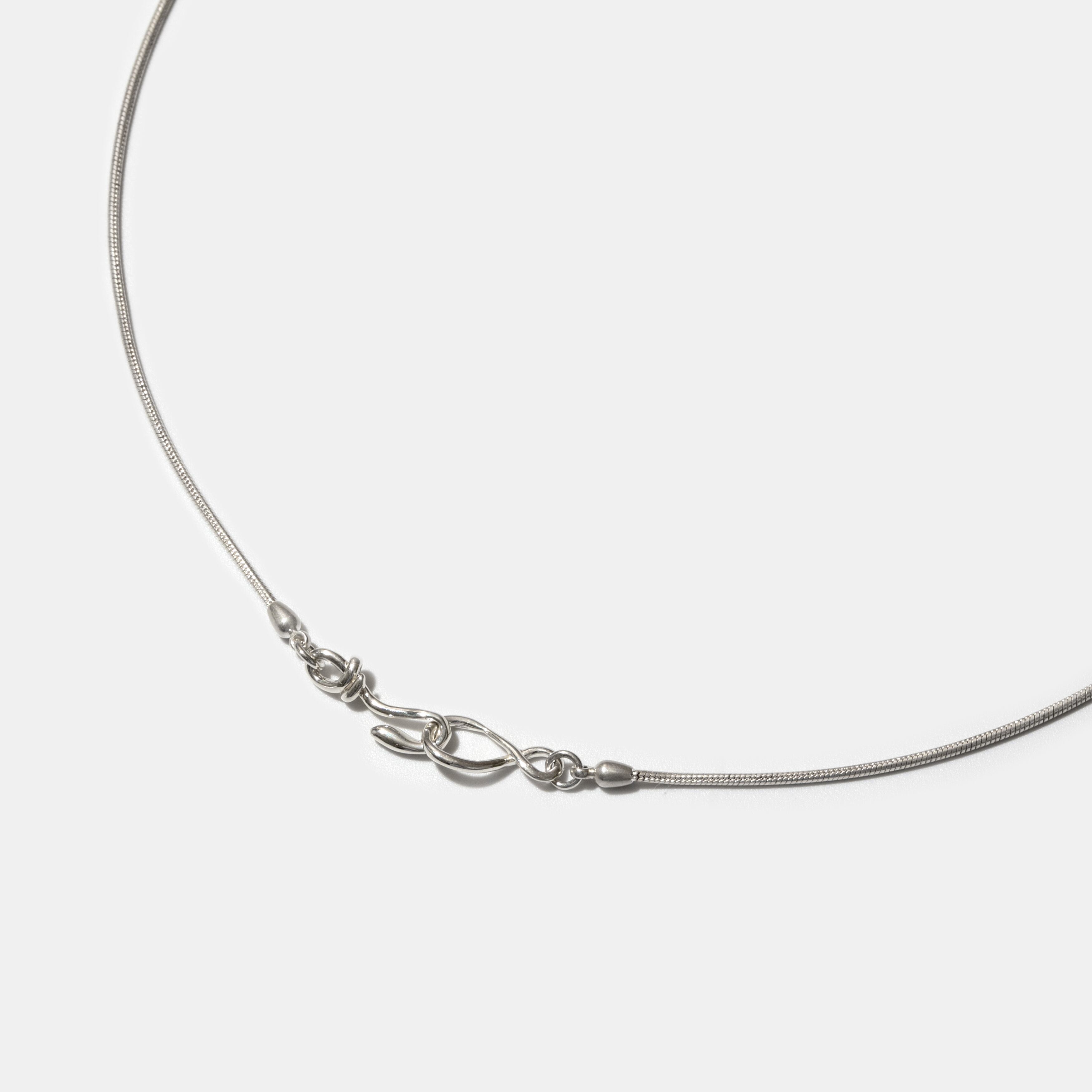 スネークチェーンと調和するモチーフが主張しすぎることなく、程よいアクセントを添えるアイテムです。