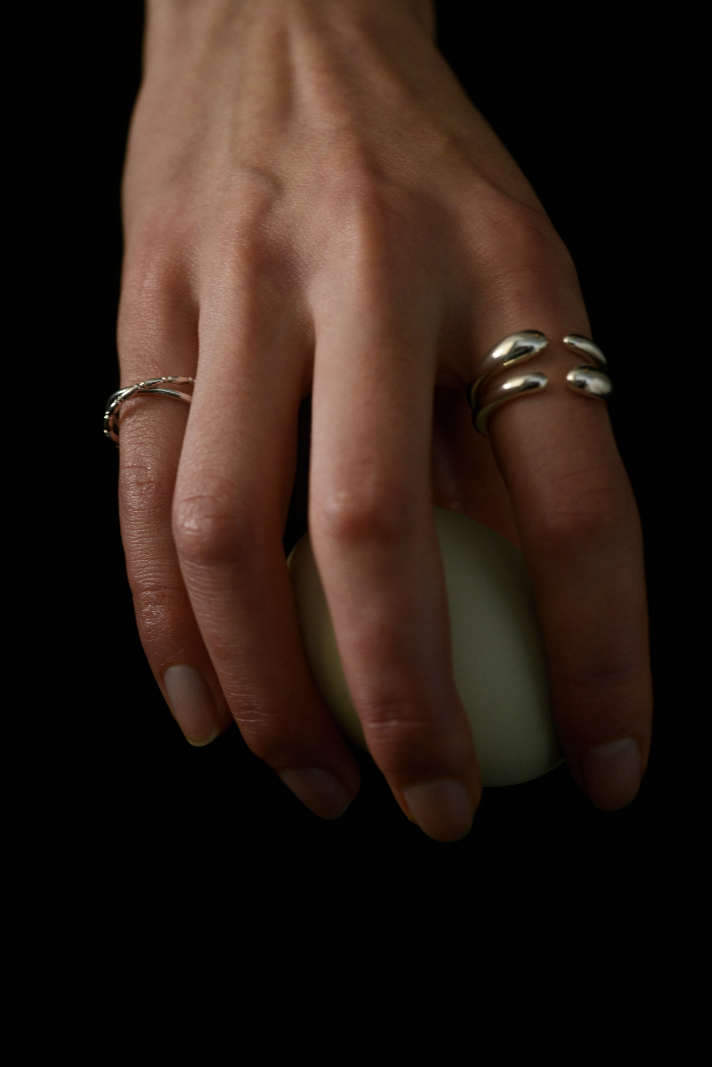 ユニークなフォルムが目を惹くリング。