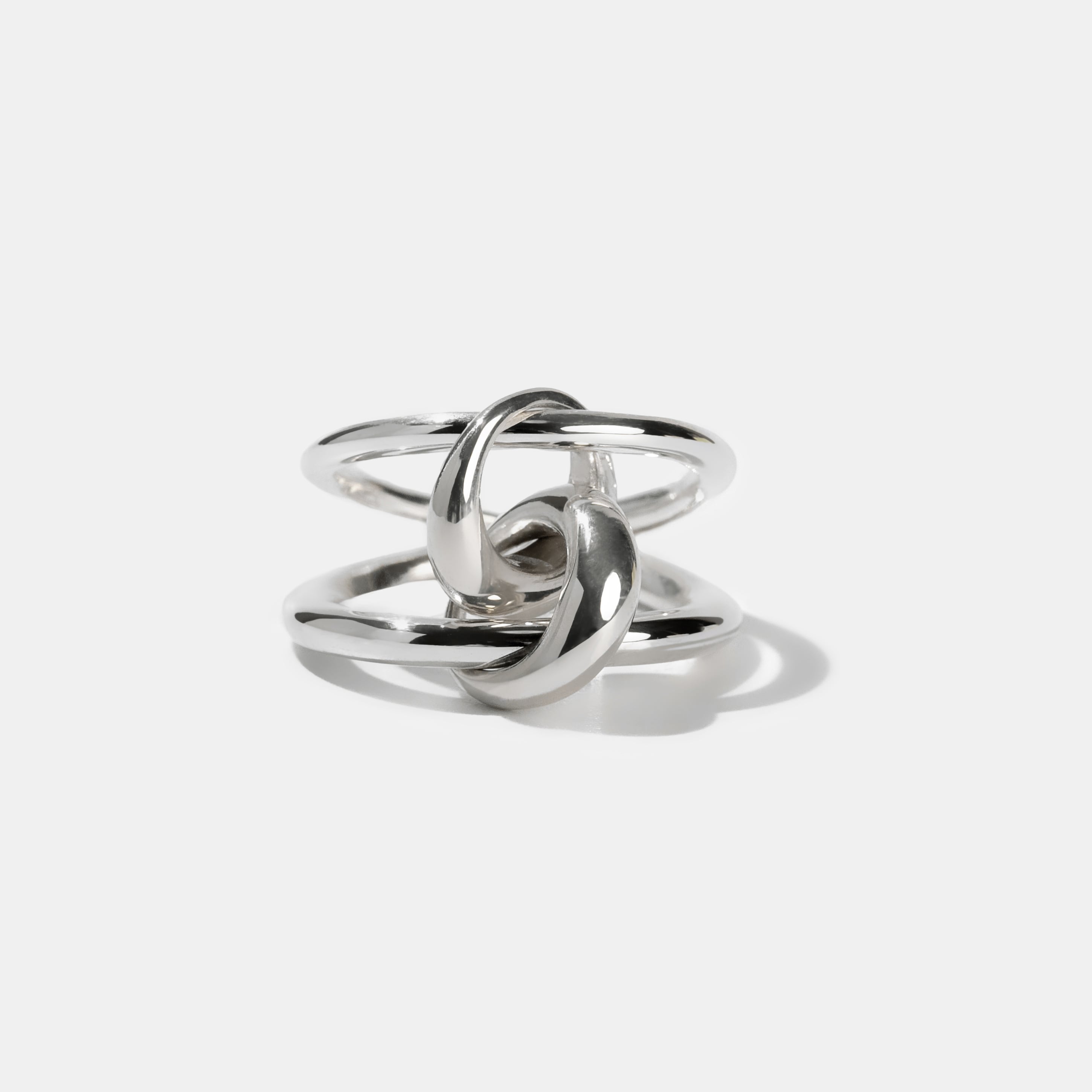 丸みを帯びたボリュームのあるモチーフが魅力のチェーンリング。
